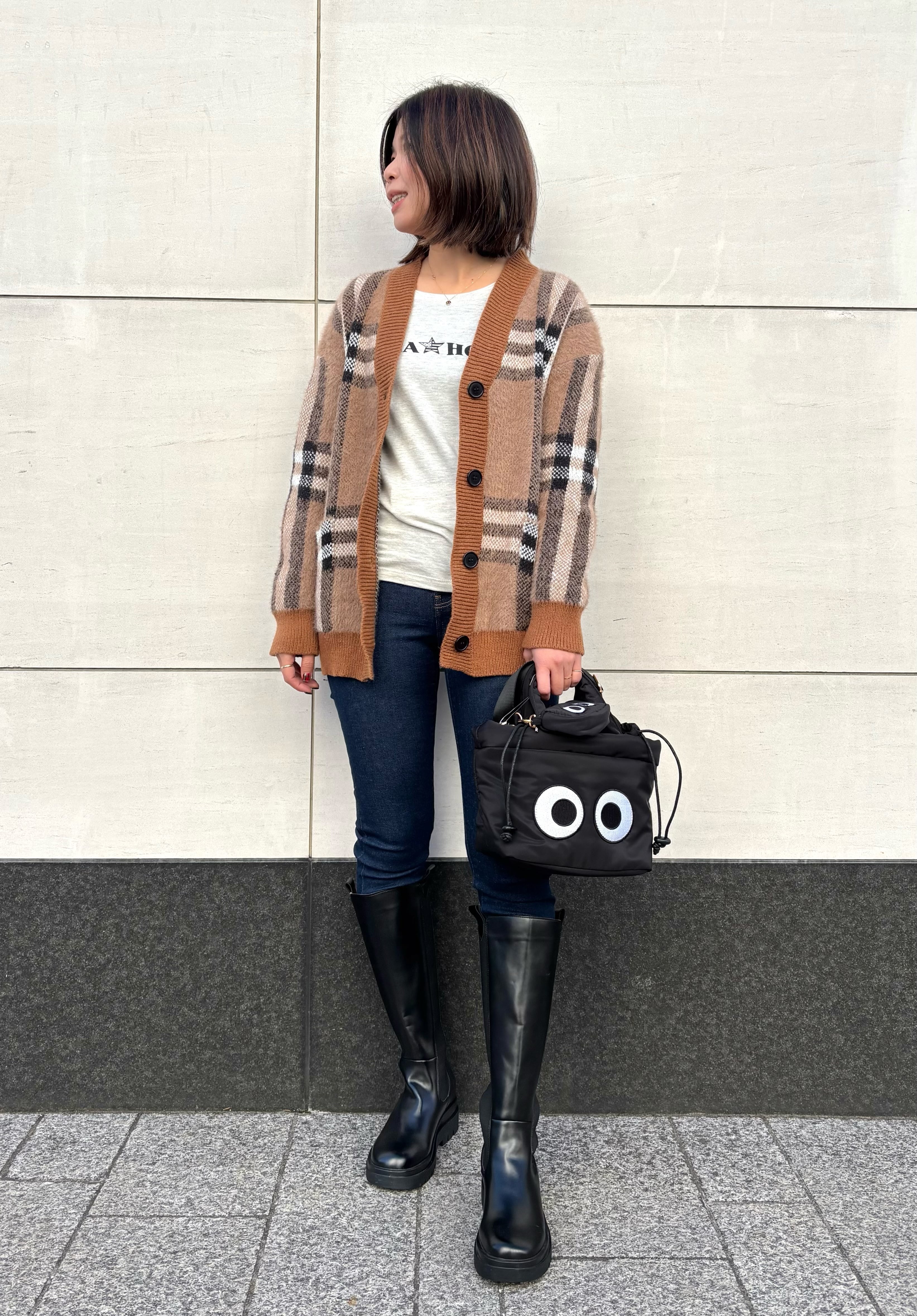 チェック柄モヘアニットカーディガン
