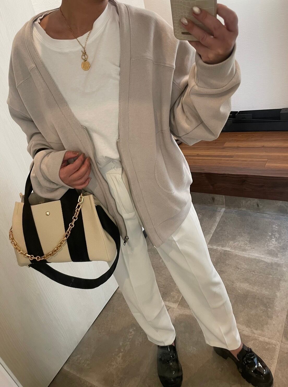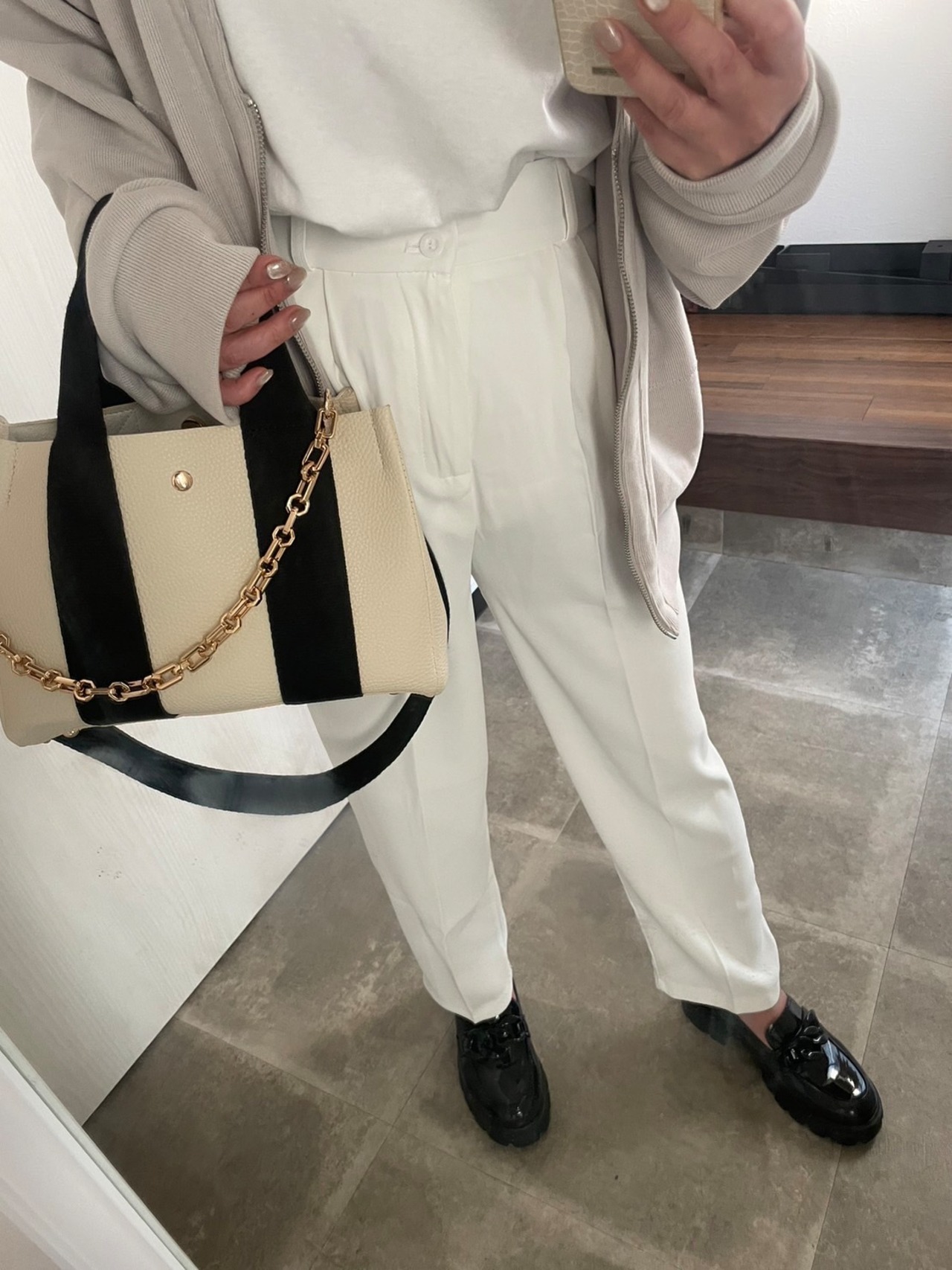 ゴールドの太チェーンが付いていておしゃれです